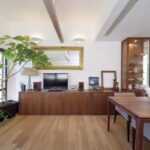広尾の住宅街にあるテラスハウスを改装したショールーム兼オフィスです。築14年の住宅を、漆喰の壁、オークのフローリング、ウォルナット他の造作家具で彩っています。